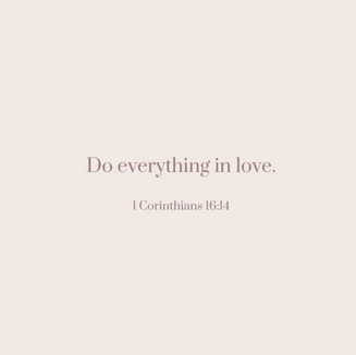 Do EVERYTHING in love? I know that seems impossible to accomplish. When I imagine doing absolutely everything in love, my mind pictures a perfect world where there is peace and happiness all of the time. But, unfortunately that is not true. Doing everything in love does not create a perfect world. Doing everything in love can be messy, it can be hard, it takes sacrifice and it takes bravery. When we decide to do everything in love, it doesn't take away the struggles and obstacles in life, rather it gives it purpose.
